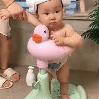 Un gran ayudante para el baño de mamá; uno es suficiente. El bebé está feliz y cómodo.