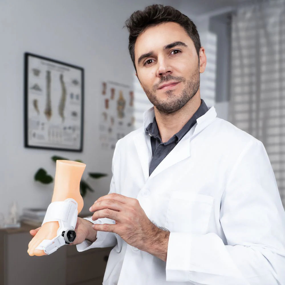 Por supuesto, nuestro corrector de hallux valgus está especialmente diseñado para adaptarse a todos los tamaños de pie gracias a sus dos correas ajustables, ofreciendo una solución universal y fácil de usar.