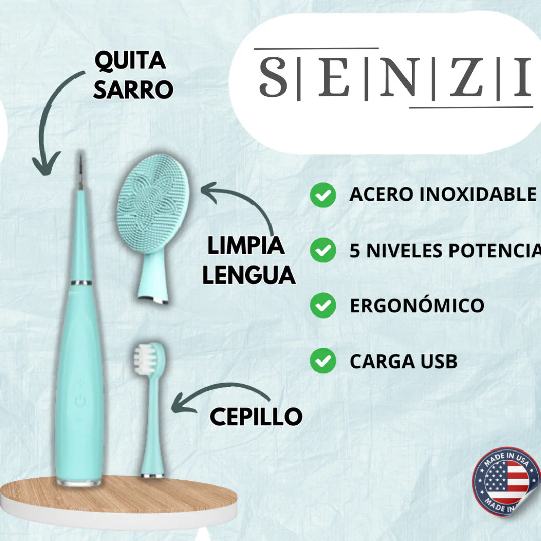 El cepillo dental sónico utiliza vibraciones de alta frecuencia para limpiar profundamente tus dientes y encías, eliminando la placa, bacterias y combatiendo el mal aliento de manera eficaz.