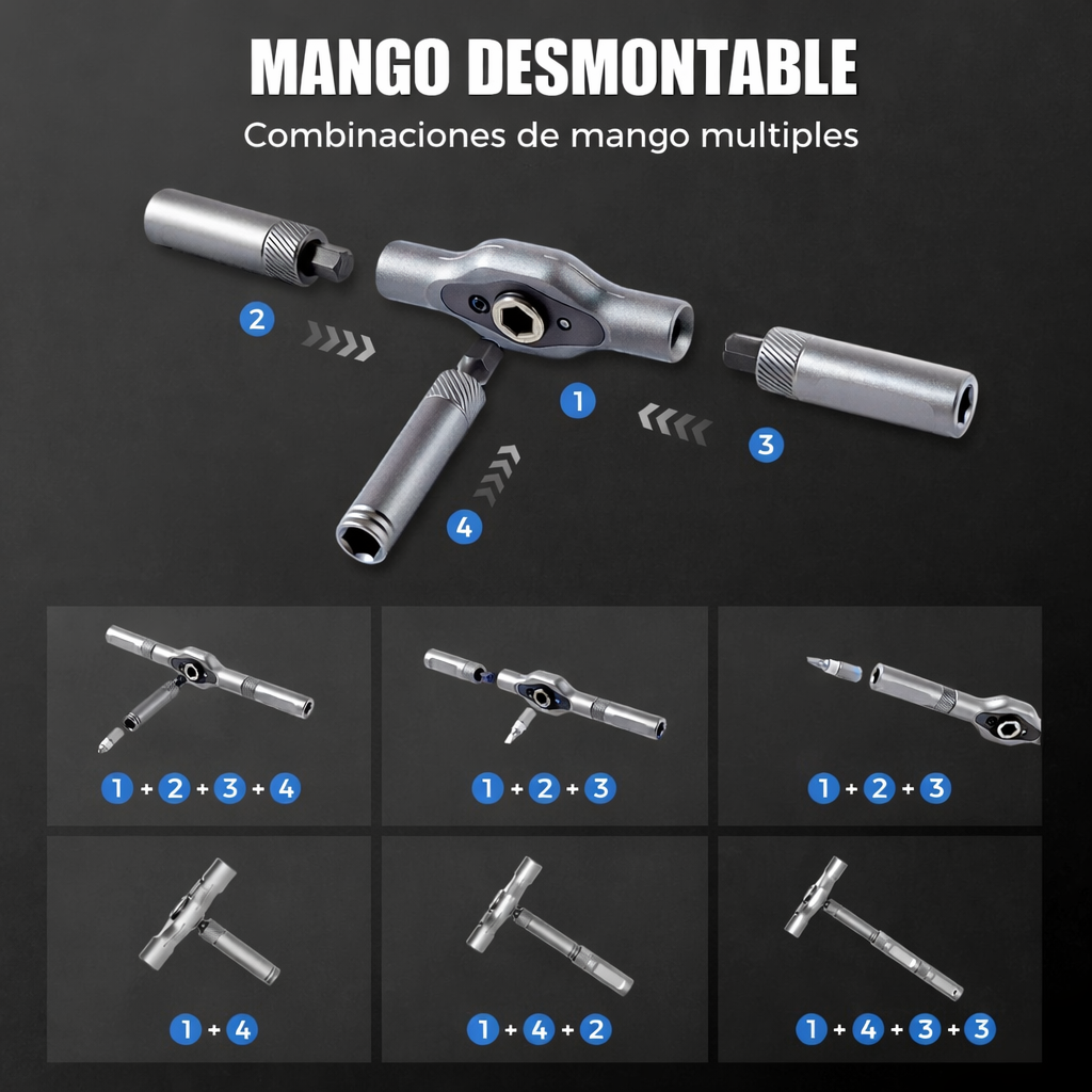 Además, incluye puntas intercambiables, cuidadosamente seleccionadas para cubrir los tornillos más comunes que se encuentran en muebles, electrodomésticos, bisagras, bicicletas y arreglos generales del hogar.