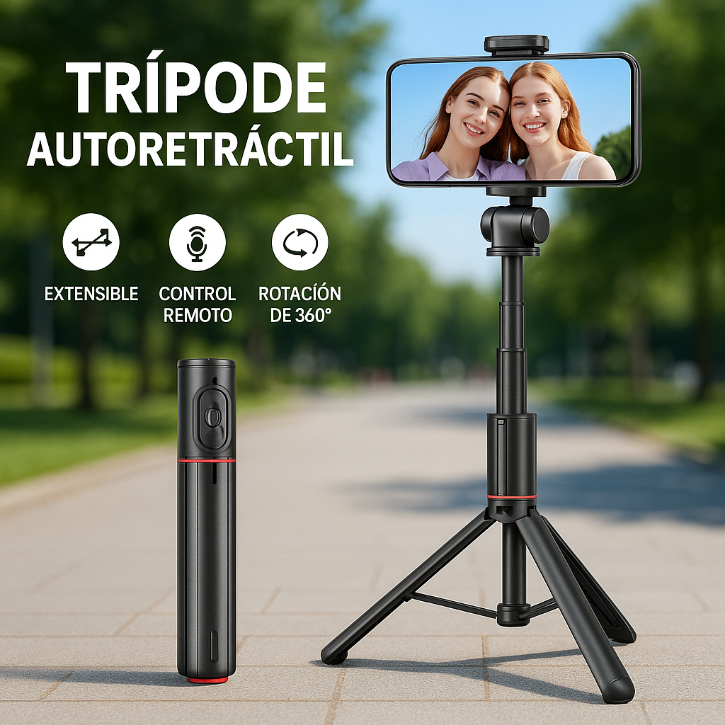 Te presentamos el Trípode Autodesplegable con Control Magnético y Altura Extensible de hasta 175 cm. ¡Es tan práctico que se activa automáticamente con solo dejarlo caer al suelo!