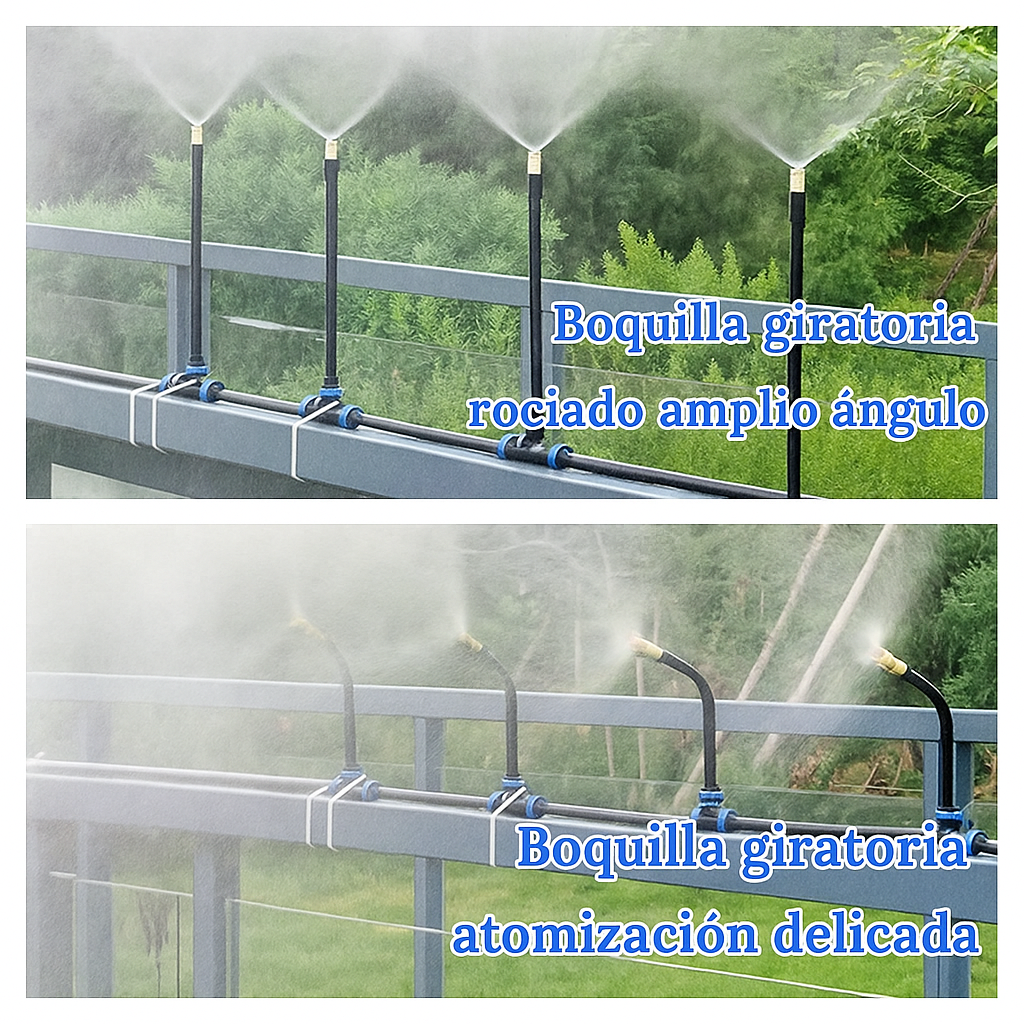 Ya sea que desee colocarlo en el suelo, fijarlo a una cerca o colgarlo en un macizo de flores, ofrece gran flexibilidad. Se puede usar en diversas ocasiones, comopatios, céspedes, sistemas de refrigeración de techos, agricultura, sistemas de refrigeración por aspersión de piscinas, invernaderos, riego de plantas de jardín, etc.