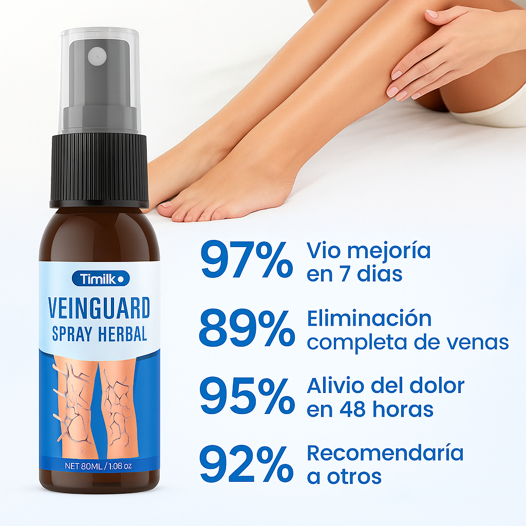 Timilk® VeinGuard Herbal Spray es la solución refrescante que tu cuerpo viene pidiendo silenciosamente. Diseñado especialmente para personas que pasan largas horas de pie, frente al computador o sentadas en jornadas interminables, este spray herbal es un aliado diario para devolverle a tus piernas esa sensación de ligereza y bienestar que tanto extrañas.